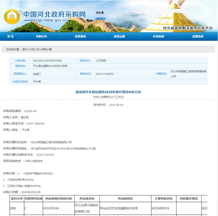 平鄉縣住建局2020年雙代項目中標
